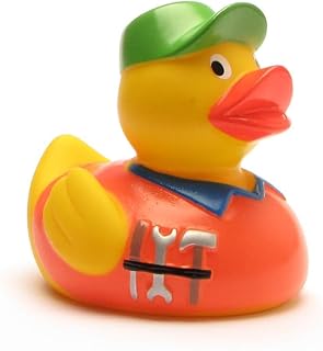 Duckshop I Badeente I Quietscheente I lustige Badeente KfZ-Mechaniker - L: 7 cm - inkl. Badeenten-Schlüsselanhänger im Set