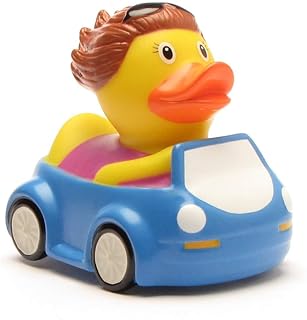 DUCKSHOP I Quietscheente Autofahrerin I Badeente I L: 7 cm - inkl. Badeenten-Schlüsselanhänger im Set