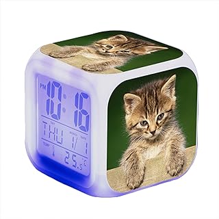 Wecker Katze Jungen und Mädchen LED beleuchteter Wecker Nachtlicht Wecker mit Anzeige Zeit Datum Temperatur,8X8X8cm (K)
