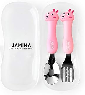 Chingde Baby Löffel Gabel Set, 2er Edelstahl Baby Besteck Set Gabel Löffel Set mit Aufbewahrungsbox für Portable Kinder Utensilien Selbsternährung Lernen