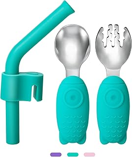 Babylöffel, Termichy Baby Gabel Löffel besteck baby Edelstahl Esslernbesteck mit silikon strohhalme Kinderbesteck mit Aufbewahrungsbehälter baby Utensilien18 Monate +(Grün)