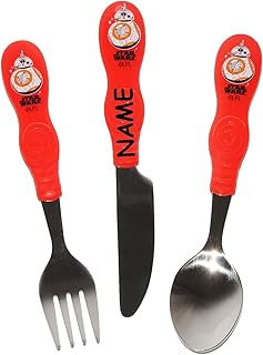 alles-meine.de GmbH 3 TLG. Set _ Besteckset - aus Edelstahl - Star Wars - BB 8 - Roboter Droide - incl. Name - Kinderbesteck - rostfrei _ Messer + Gabel + Löffel - Besteck fü..