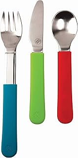 TUM TUM Edelstahl Kinderbesteck - Kinder Löffel, Kinder Gabel, Kinder Messer - Kinderbesteck Plastikgriff - extra mit abnehmbarer Silikonhülle - Lernbesteck - BPA-frei - Spülmaschinen geeignet