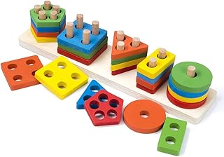 Amasawa Steckplatte Holz,Form Lernen Stapel Puzzles,Kleinkind Spielzeug Vorschule Form Farbe Erkennung Geometrische Sortierung Stapel Puzzlespiele Geburtstagsgeschenke für Kinder