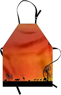 ABAKUHAUS Afrika Kochschürze, Panorama von Safari-Tiere-Möven-Reflexionen im Hintergrund an der Sonnenuntergang-Landschaft, Höhenverstellbar Klare Farben ohne verblassen, Schwarz Orange