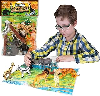 Jumbo Playset - Safari Tiere aus Deluxebase. Große Tiere Spielzeugset. Tasche mit großen Safari-Spielzeug wie Tiger, Löwe, Giraffe, Elefant, Gorilla und Gepard. Perfektes Zoospielzeug für Kinder