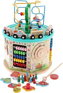 T TOOYFUL 8 in 1 Spiele Center Aktivität Würfel Pädagogische Spielzeug inklusive Motorikschleife, Uhr, Schachspiel, Abakus, Formensortierspiel usw.